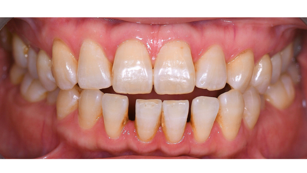 こちらの患者さんは、年々下の前歯が前に出てきて、受け口とすきっ歯になってきたと、相談に来られました。