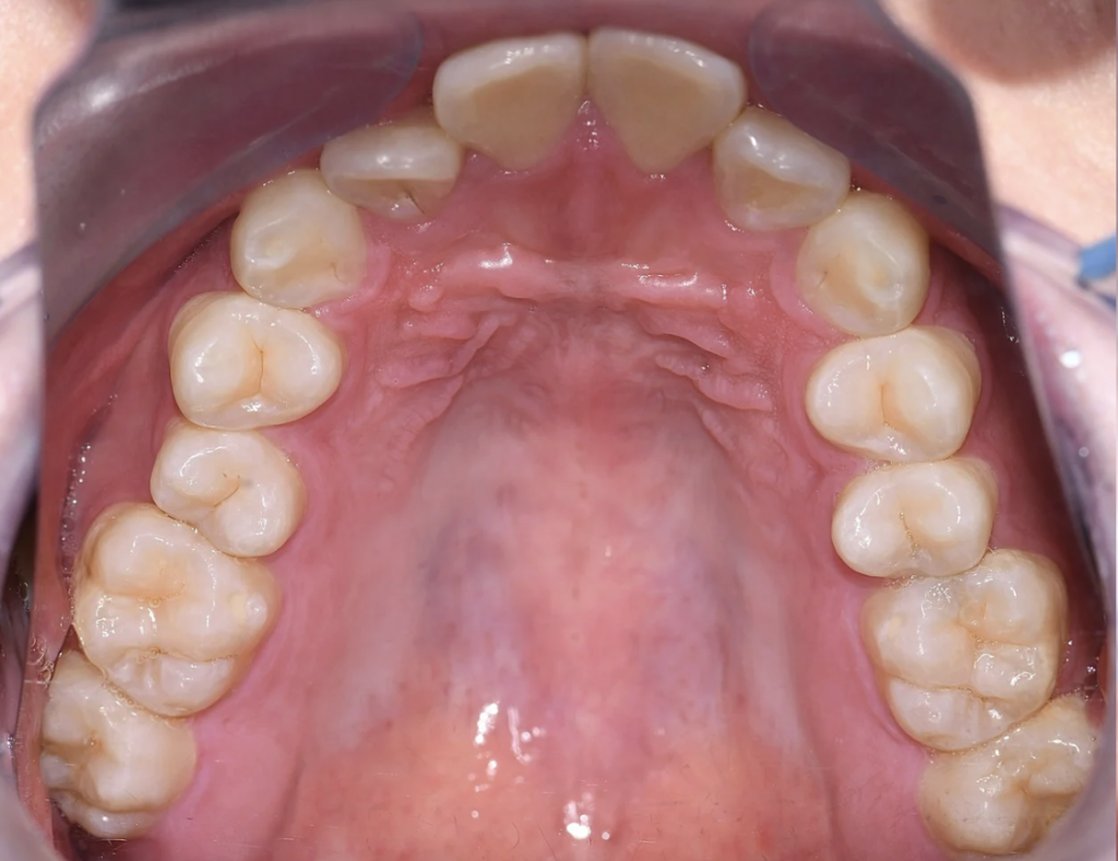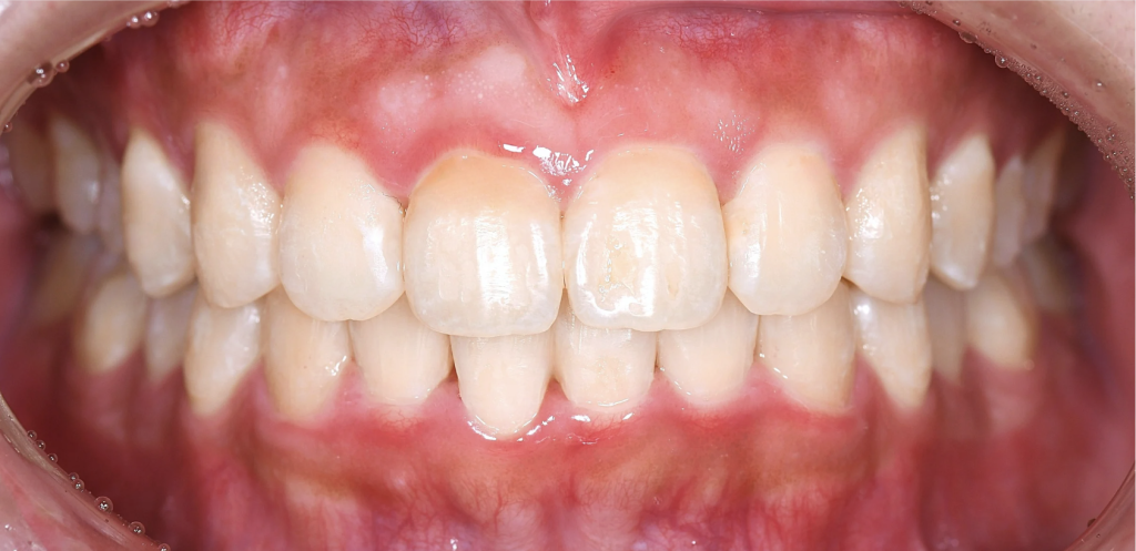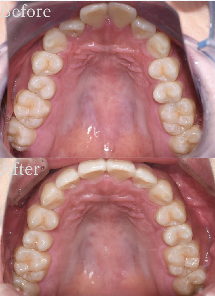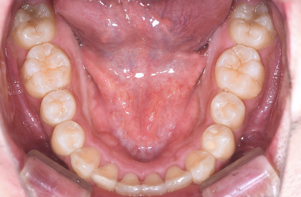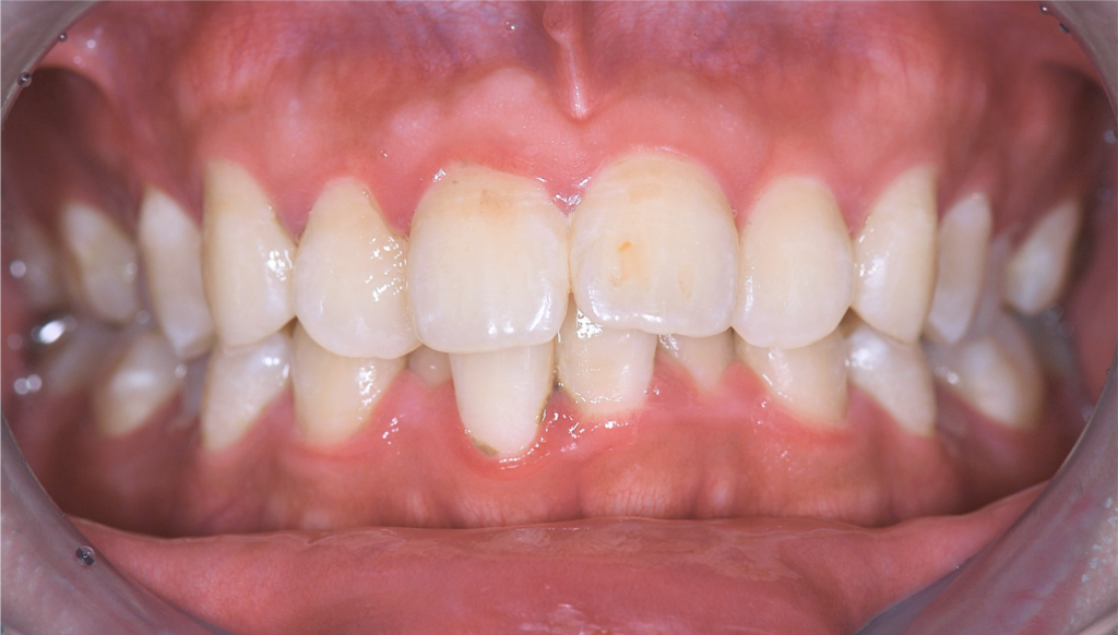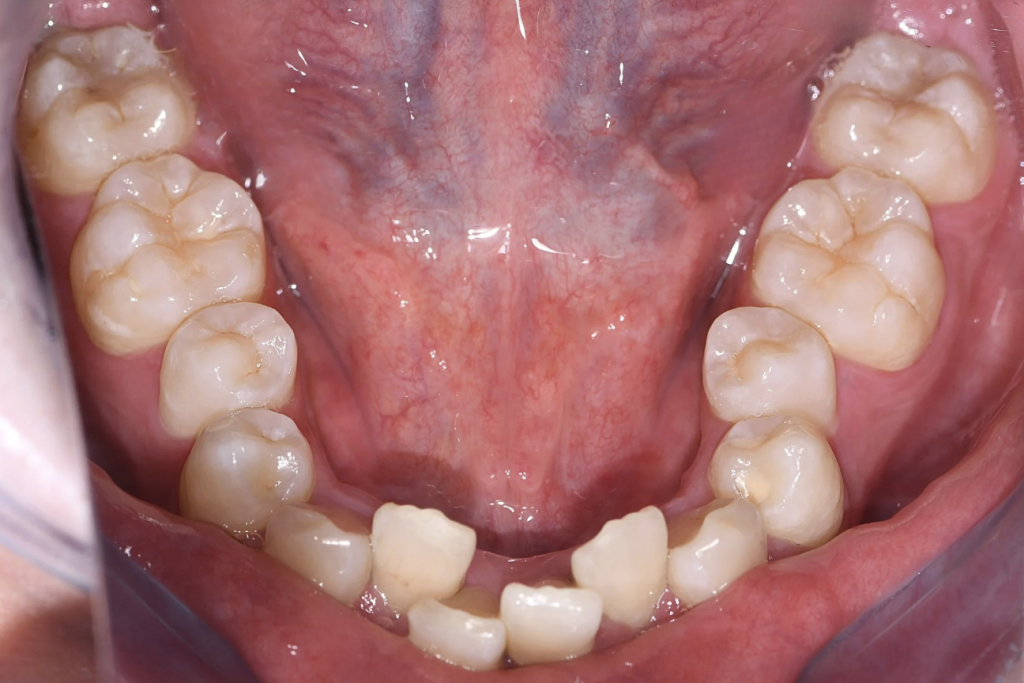 また、やや上の前歯が下の前歯に覆い被さり、噛み合わせが深い(ディープバイト)傾向もあり、奥歯への負担が強くかかる噛み合わせでした。