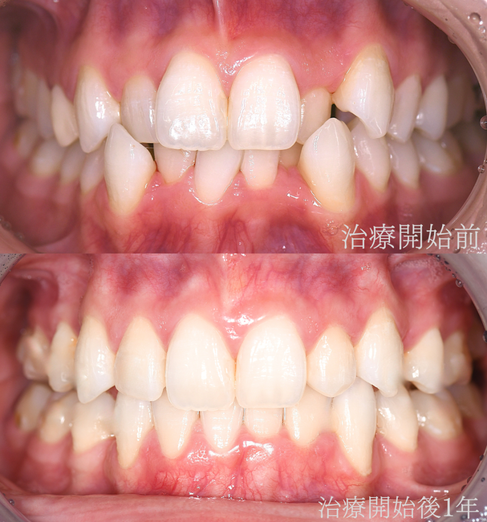 【上顎前突(出っ歯)改善】治療開始後1年の経過写真です。
