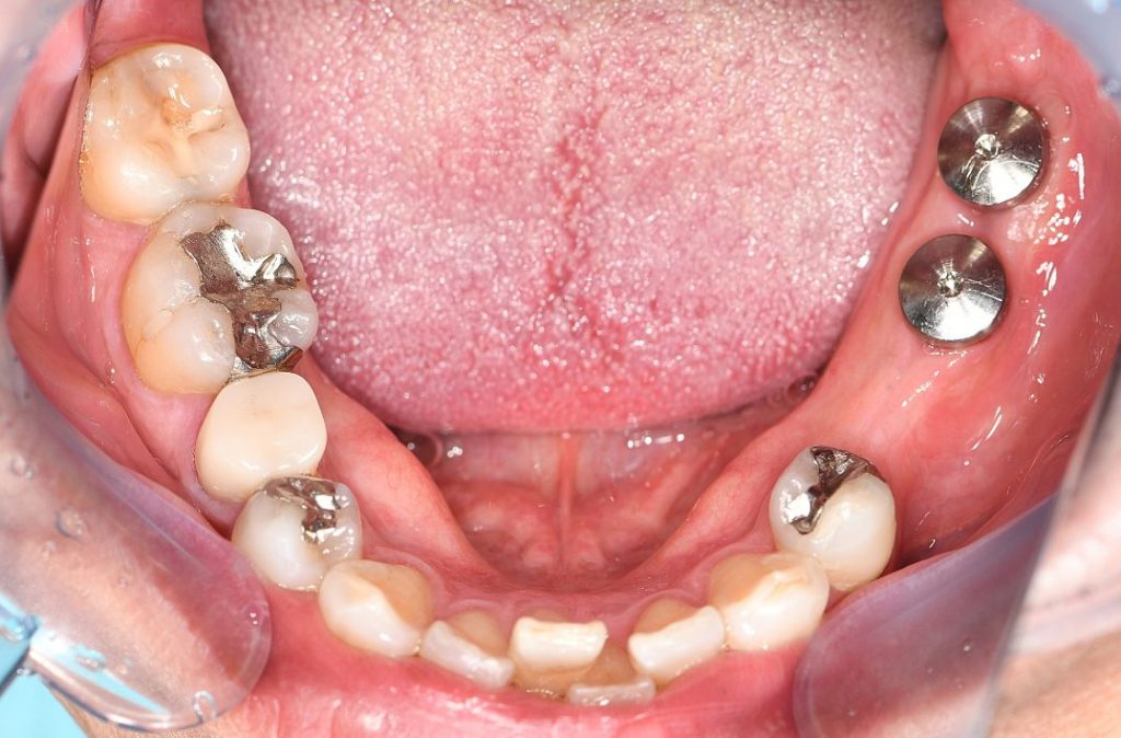 左下小臼歯部(5番)については、インプラントは埋入せず、奥のインプラントを土台として